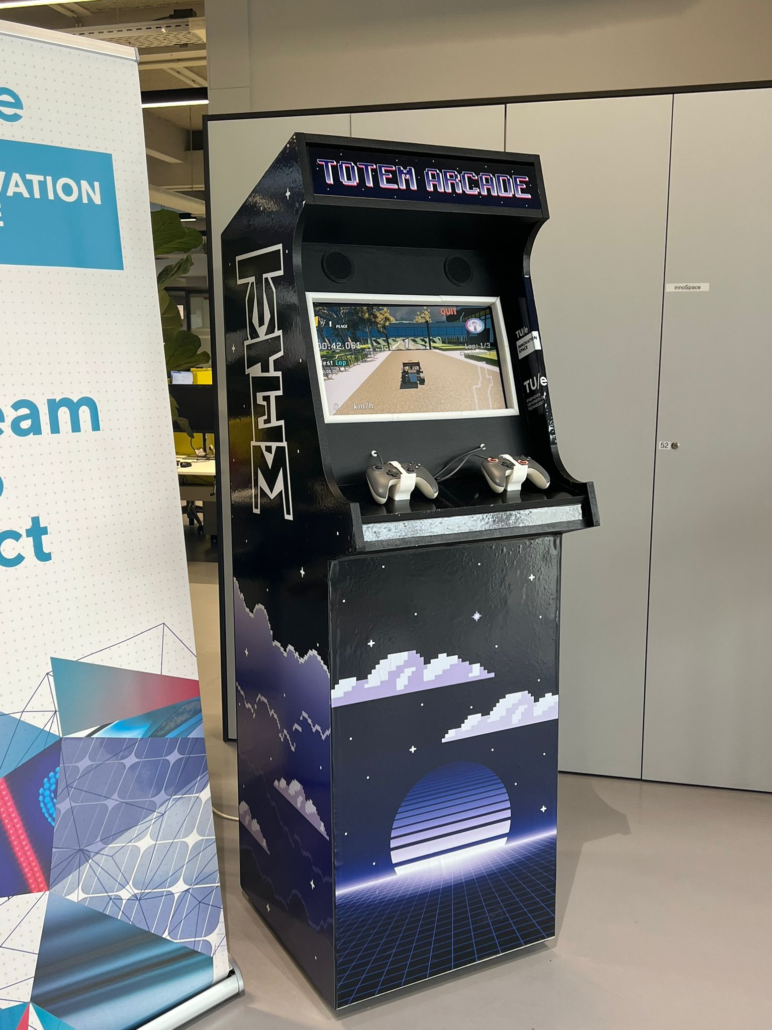 Momentum Kart puts you in the driver’s seat on the TU/e campus, racing in karts inspired by student teams and loaded with quirky power-ups from various associations. Compete with friends through online multiplayer or chase the fastest lap times on our global leaderboard. The goal? Finish three laps across a track that brings the TU/e campus to life drift around Auditorium, zip under Atlas, and blast past Metaforum on your way to Neuron. Designed with an arcade racing feel, the game keeps things fast, fun, and chaotic. Power-ups let you boost ahead or sabotage rivals, each themed around TU/e student life. Play with a controller or keyboard, either by downloading the game [LINK] or finding it on our custom-built arcade machine. Originally developed for the TU/e Momentum ceremony (the graduation event for all bachelor students).