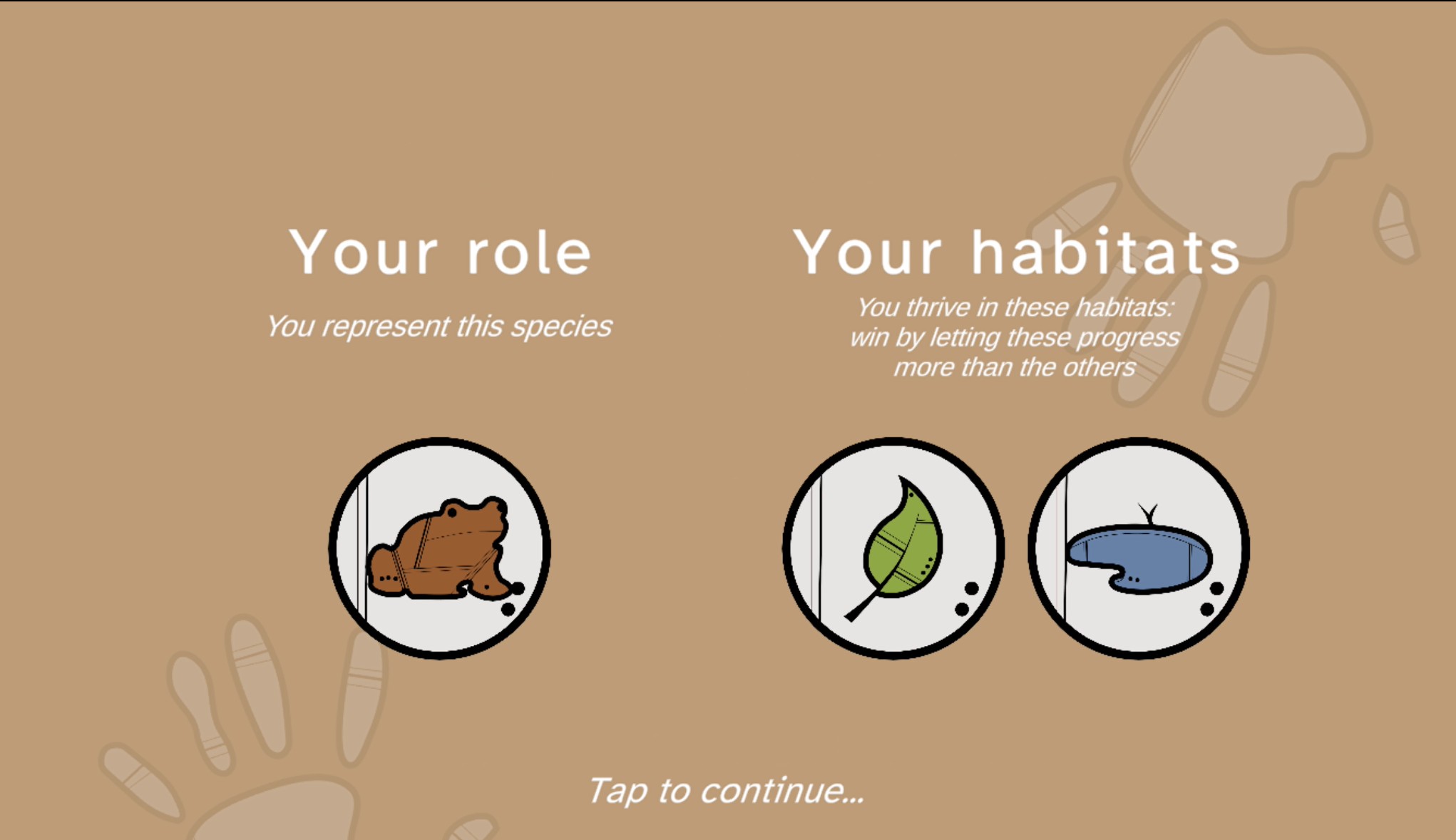 The development timeline of the game was short, since it was part of a game jam. We only had a few days, including a presentation and simultaneous work on other academic components of the competition. I was responsible for managing the development team and other academic challenges, and additionally worked on the concepting, ideating, designing, and art of the game. The art included the animal icons, backdrops, and environment icons, but also the concept of more diegetic ecosystem selection.